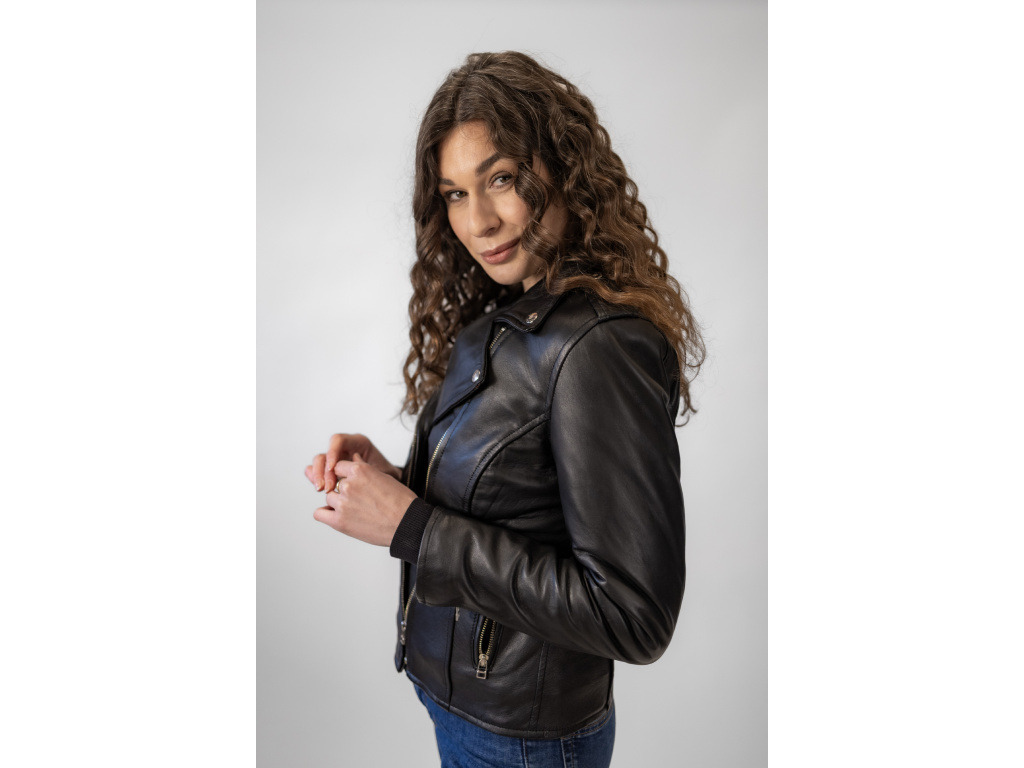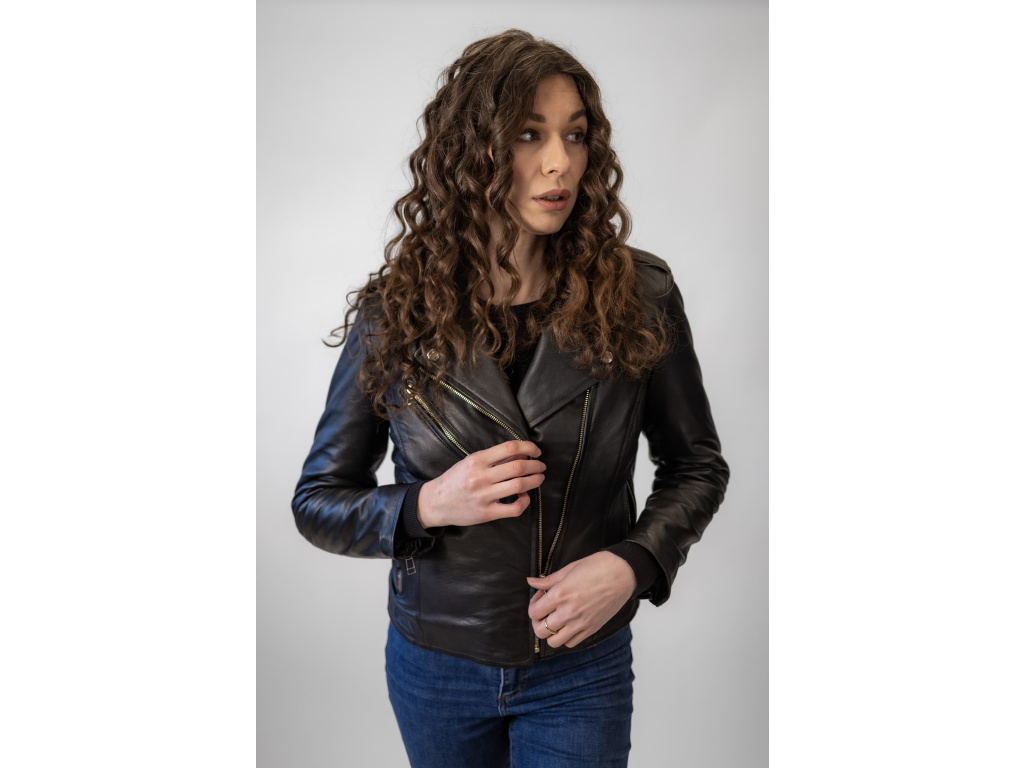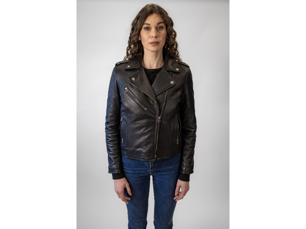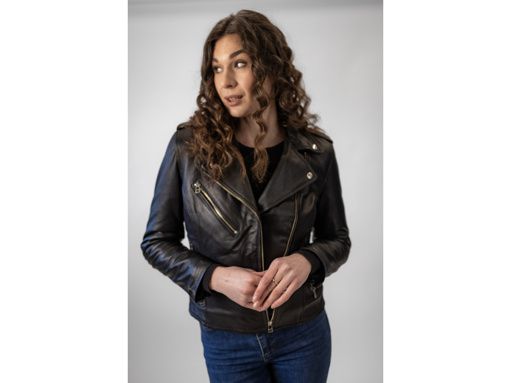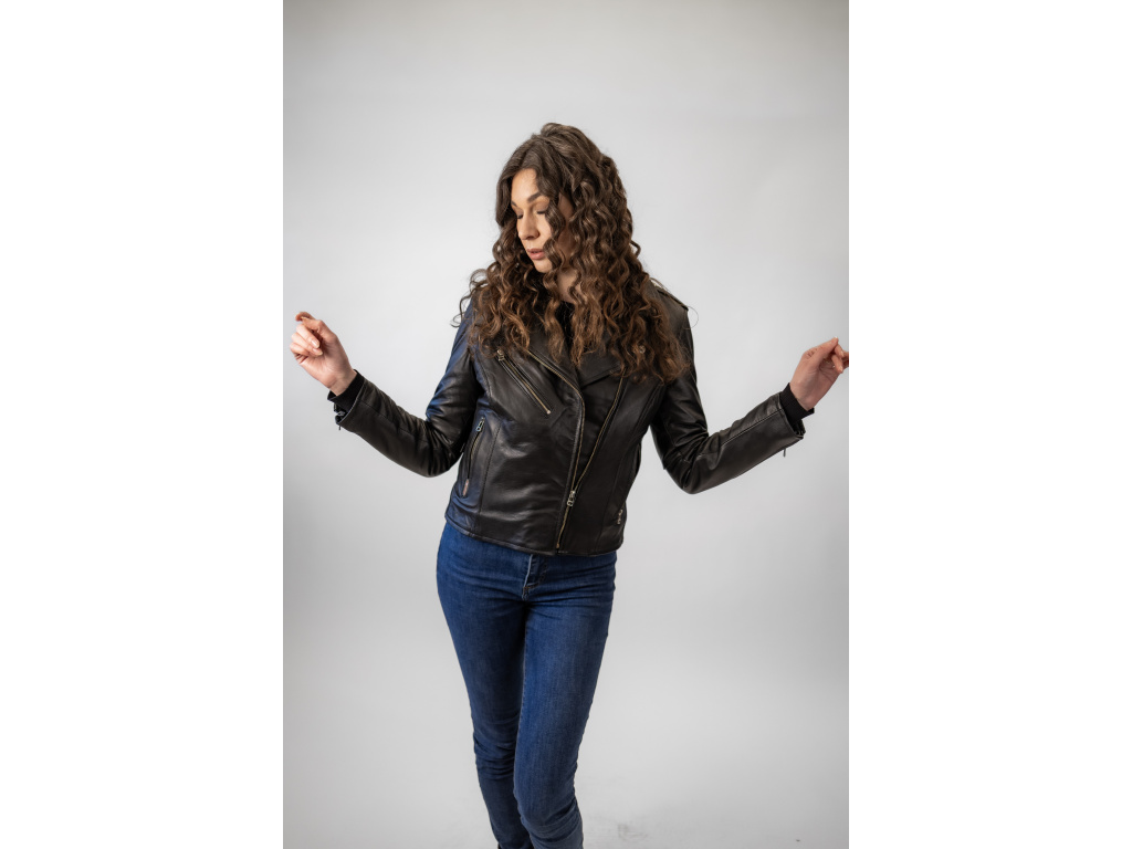 Dámská Kožená Bunda Křivák Lizzy Nuvell Brixton Černá