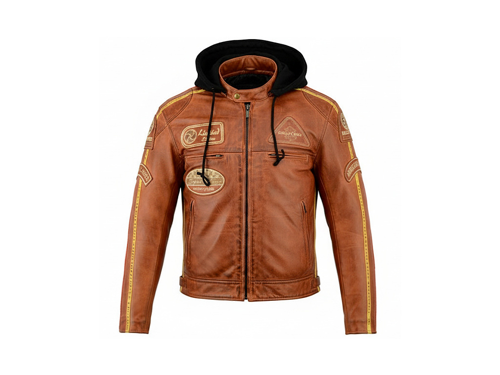 Pánská Kožená Bunda OxB Brixton Hnědá